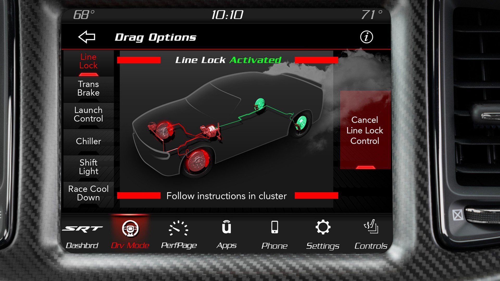 As a standard Challenger, you still get creature comforts like air conditioning, a radio, and even carpets. But with Transbrake 2.0, sticky Mickey Thompson ET Street R 315/50R17 drag radials on the staggered wide-body setup with flared fenders, launch control, and the drag mode tuning baked into the 8-speed automatic, the Demon 170 is capable of pulling 2.004 Gs during acceleration runs, more than any other production car in history. Line lock allows you to lock the front brakes to help pull some rad burnouts and put heat into the rear tires. Optional carbon-fiber wheels helped the Demon 170 shed about 157 pounds over the standard Challenger SRT Hellcat Redeye widebody.