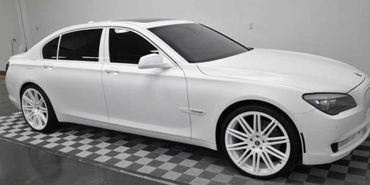 For sale at Marshall Goldman Motor Sales, located in Warrensville Heights, Ohio, is a 2010 BMW 760Li that was ordered and once owned by LeBron James. The car is finished in a matte pearl white with a full platinum merino leather interior.