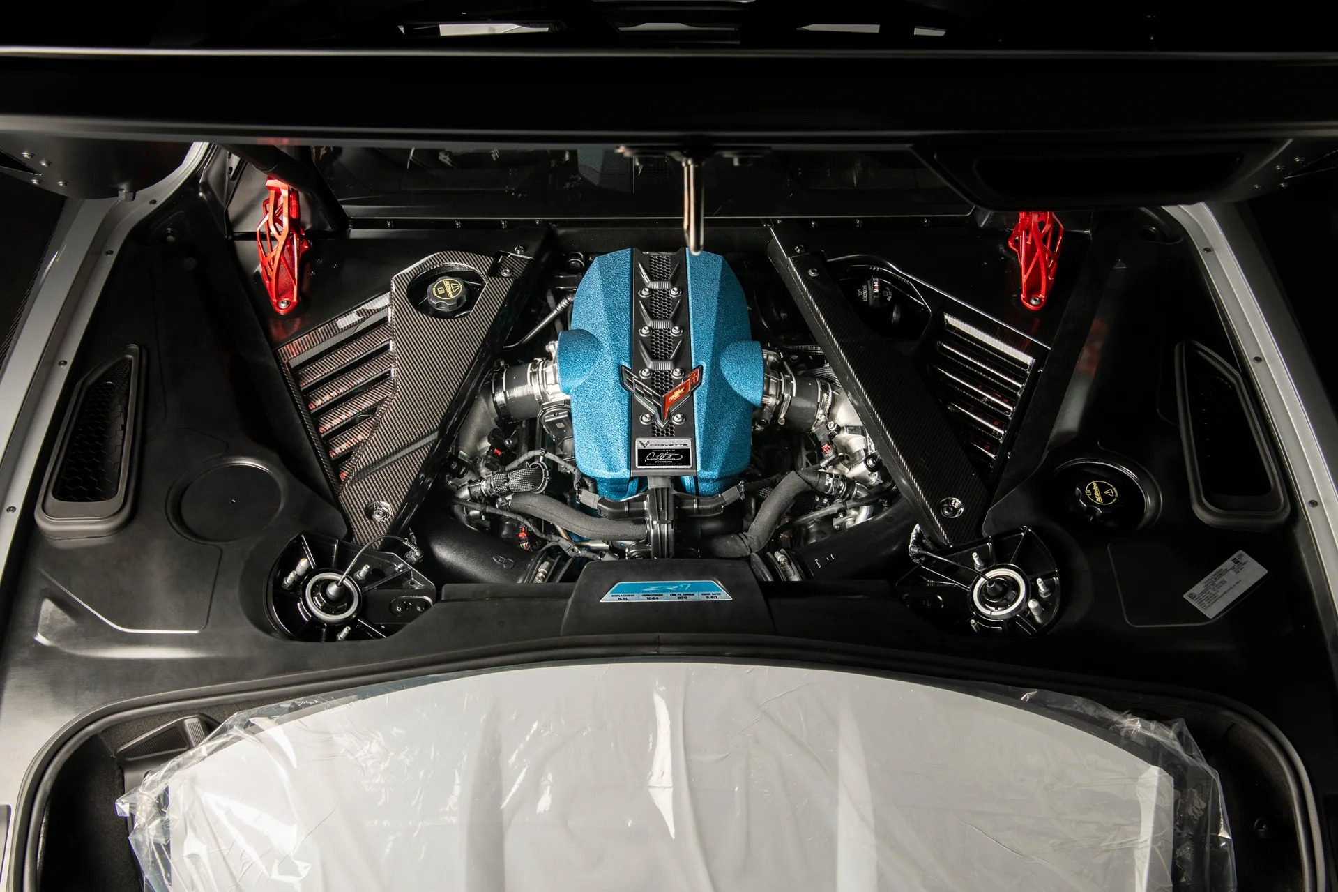 The LT7 powers the C8 Corvette ZR1, a 5.5L twin-turbocharged V8 engine that produces 1,064 horsepower at 7,000 rpm and 828 lb-ft of torque at 6,000 rpm. Paired with an 8-speed dual-clutch transmission, rapid gear shifts contribute to the ZR1’s impressive acceleration and top speed. With these specs, the ZR1 achieves a 0–60 mph time of 2.3 seconds and a quarter-mile time of 9.6 seconds at 150 mph, making it the fastest and most powerful production Corvette ever built.