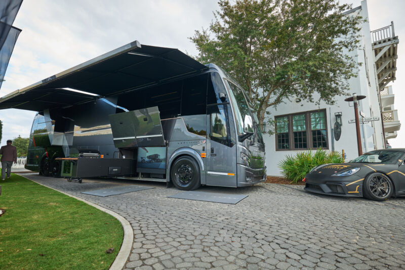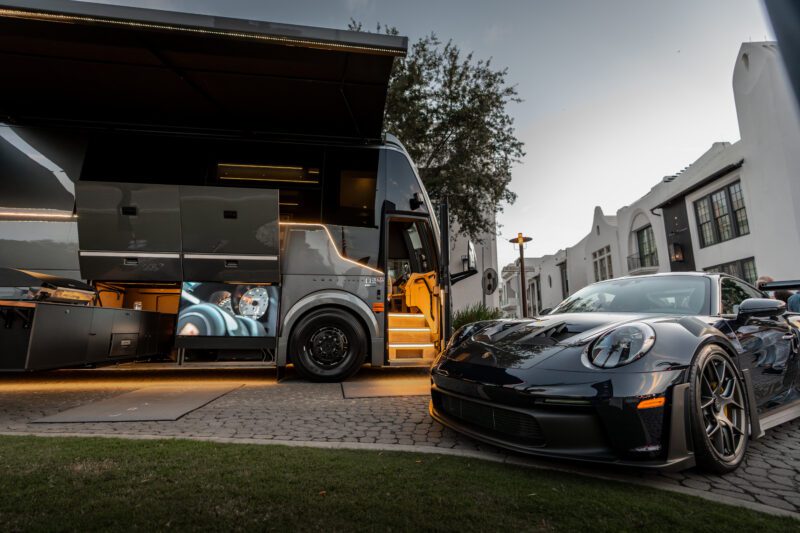 The weekend itself was the kind of thing that makes car enthusiasts remember what gave them the love for all things automotive. Davis Brackett, whose passion for car culture is as infectious as it is precise, helped shape Cars of 30A into a gathering that feels personal, even alongside world-class cars and brands. Ferrari of Atlanta, Flatrock Motorclub, and LOKI Coach were everywhere you looked, not confined to a single event but woven through the weekend like threads in a rich tapestry. Walking past the gleaming curves of a Ferrari 12Cilindri one moment and the understated track-ready Porsche 718 Clubsport the next, there was a sense of discovery at every turn. And yet, it wasn’t just about the cars—it was about the people, the conversations sparked by shared interests, the smiles when someone got behind the wheel for a test drive, or the quiet awe at the interior of the Prevost motorhome by LOKI Coach.