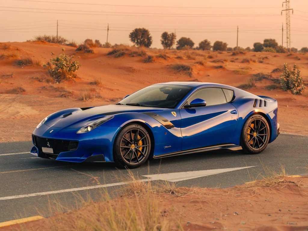 Inside, the F12tdf is equally mesmerizing, with a driver-focused cockpit that blends luxury with purpose. Alcantara, carbon fiber, and aluminum are the materials of choice, providing a tactile environment that complements the exterior’s aerodynamic finesse. At its heart, the F12tdf boasts a 6.3-liter V12 engine, a powerhouse that catapults it from 0 to 60 mph in a breathtaking 2.9 seconds, reaching a top speed of over 211 mph. With 769 horsepower and 520 lb-ft of torque delivered through a seven-speed dual-clutch transmission, this prancing horse offers a driving experience that’s both visceral and refined.