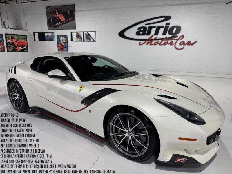 What makes Carrio Motor Cars’ offering truly special is the sheer number of examples available, seven F12tdf specs under one roof, a feat almost unheard of in the Ferrari world. Each car tells its own story through color and configuration, with finishes like Giallo Triplo Strato, Rosso TRS, Argento Nurburgring, Bianco Italia, and Giallo Modena highlighting the lineup’s diversity. Several examples have even passed through Ferrari’s exclusive Tailor Made department, resulting in one-of-a-kind specifications that add an extra touch of collectability. For enthusiasts and collectors alike, Carrio Motor Cars is offering a once-in-a-lifetime opportunity to explore a collection of Ferrari’s most celebrated V12 in one place.
