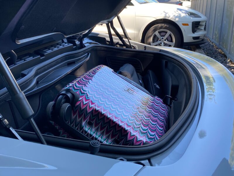 After giving him a cheery wave on his way, I head back to my place and begin the short process of packing the MCPura. Just taking a look at the storage options, and knowing how hot the engine gets, means your best bet is a squashable Tote Bag in the rear trunk, which is kind of an odd shape – long yet narrow, and almost triangular. Thanks to Rolex, who hosted me at Monterey Car Week, I’ve got an elegant solution for that – although I do find that my smallest hard-shelled carry-on suitcase will just fit too. Next time, I’ll request some tailor-made Maserati luggage too!