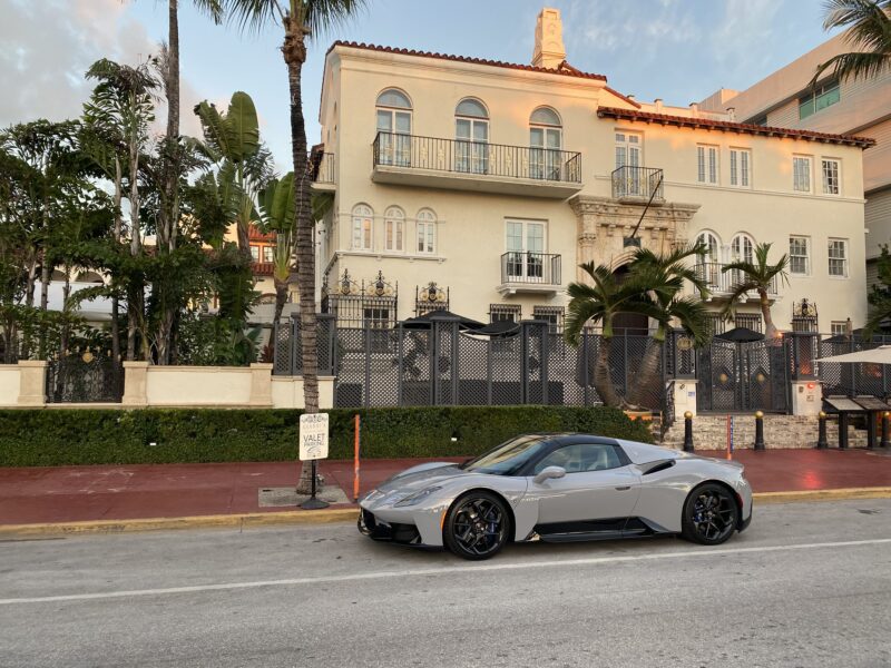 For starters, I take the MCPura out for a photoshoot to catch the Golden Hour, so take a trip from my place to Ocean Drive, say ‘hi’ to a surprisingly nonplussed breakfast chef as I snap the supercar under The Betsy Ross Hotel’s famous orb, and then take it on a cruise past the Versace Mansion (RIP Gianni) and the Clevelander. I swing a right after the Bentley Hotel, and take 5th Street to the McArthur Causeway, past the multi-millionaires of Star and Palm Islands on the right, plus the cruise ships to my left. Sending the car away from traffic light with its launch system briefly gets a motorbike cop’s attention, but he just wants to check out the car, and motors away before I take the exit to Watson Island’s exotically named Parrot Jungle Trail.