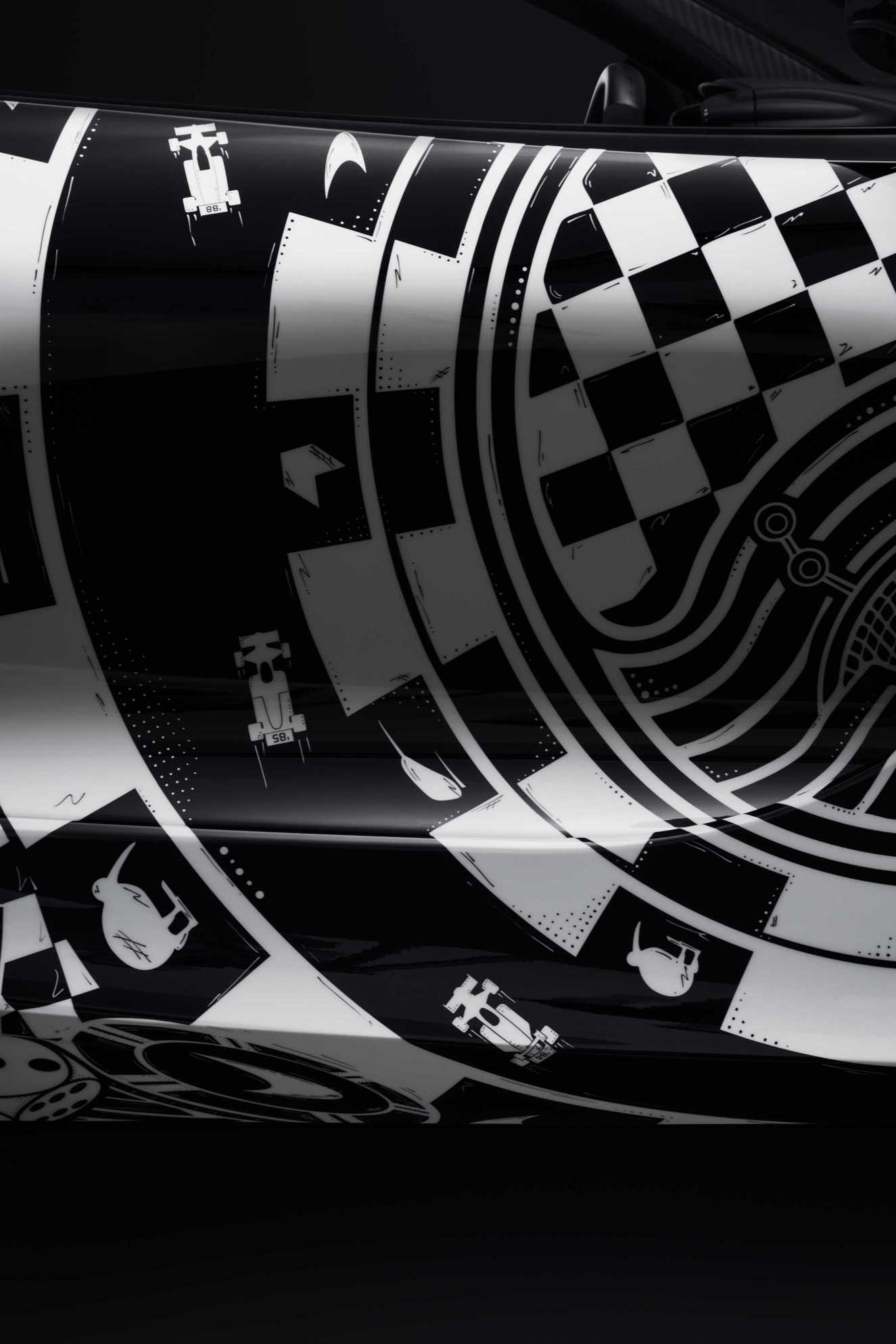 Reimagining the City of Lights through a monochrome lens, Project Viva takes an unexpected approach in a destination defined by neon color and excess. Rather than recreating Vegas’ glow through vibrancy, MSO interprets the city’s pulse, architecture, and atmosphere through intricate, hand-painted linework. The ‘Sketch in Motion’ livery captures the movement and spirit of Las Vegas – from its iconic skyline and illuminated signage to its rhythm of music and performance – all tied together with McLaren’s own racing heritage.