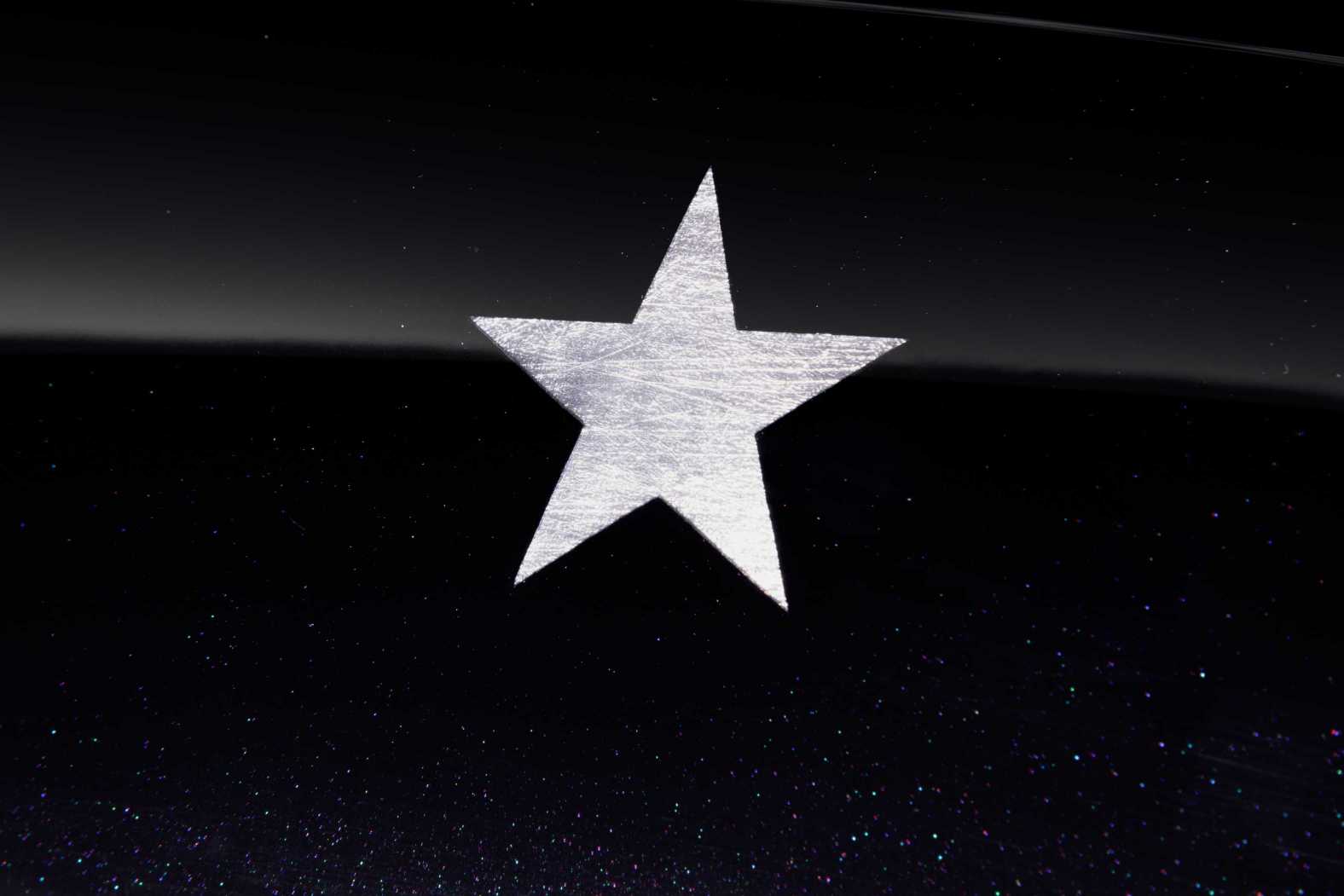 A single white five-pointed star is centered on a glossy black surface, echoing the exclusivity of Project Viva Revealed: One-of-One McLaren 750S Spider Brings Las Vegas to Life.