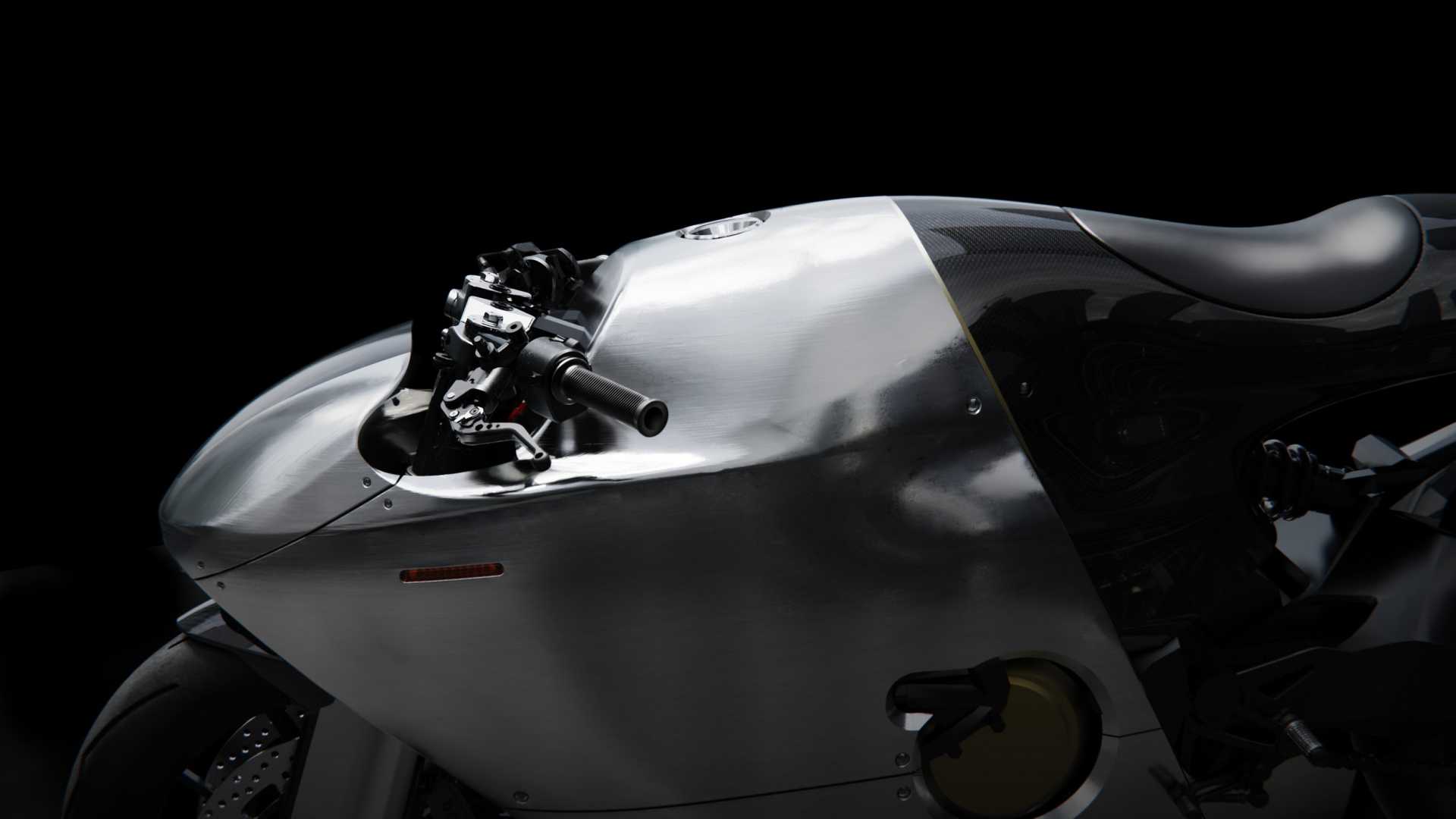 The extra weight, especially when combined with the long, sculpted and aggressive riding position, should give the bike a planted, confident feel through fast sweepers and downhill sections. Additionally, the 4.23-gallon fuel tank provides a usable 145-mile range, and Bandit9 intends for this bike to be ridden both on the road and on the track.