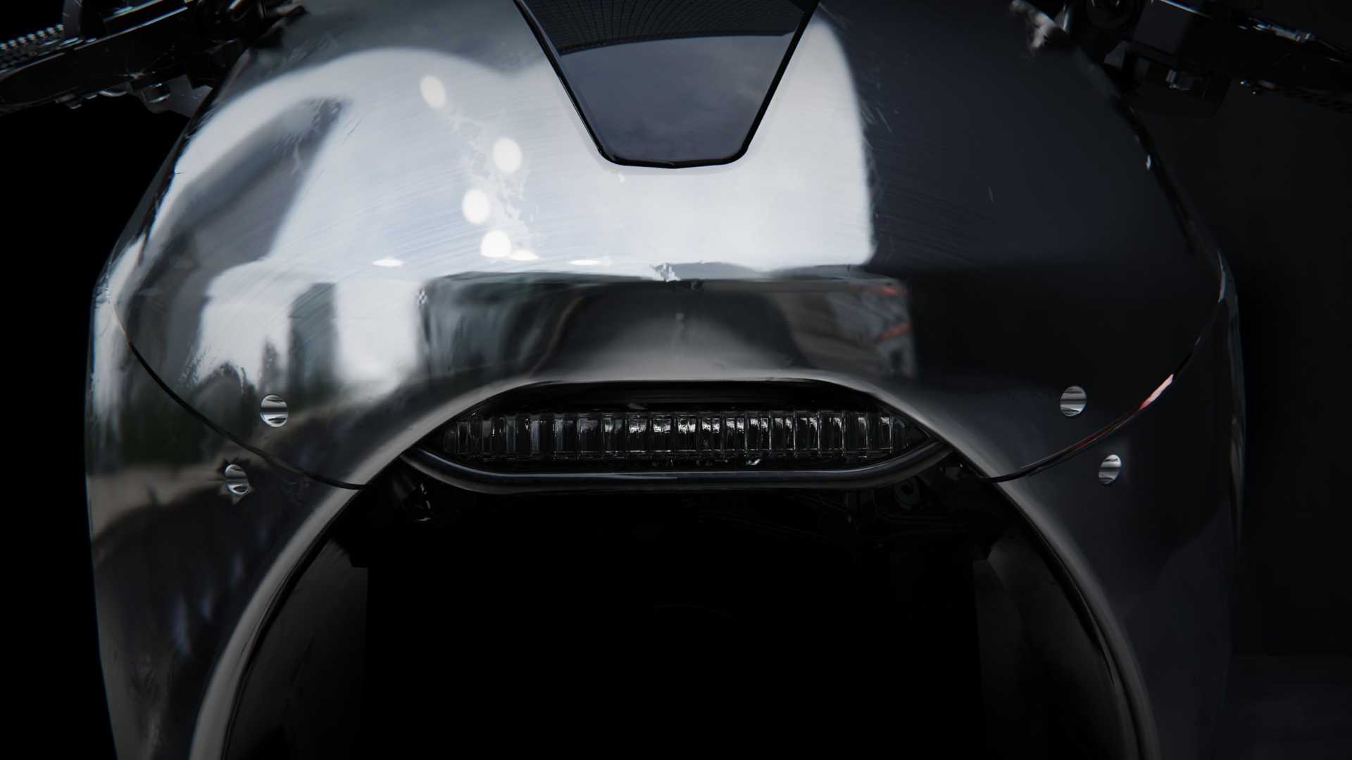 Every visual and functional element has been crafted to blend seamlessly into the overall form, right from the custom-milled aluminum fuel cap and fork covers to the internally routed cables, LED lighting that disappears into the bodywork when not in use, and an integrated exhaust that also seamlessly blends into the body.
