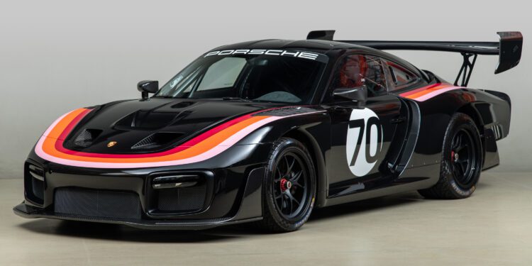 Its utilitarian cabin is trimmed with lightweight carbon fiber and alcantara on the dashboard, while it is outfitted with a fully integrated roll cage, race-spec fire suppression system, a Recaro racing seat, and a 6-point racing harness. Through the Porsche CFK multifunction steering wheel and instrument cluster, sourced directly from the GT3 R, the driver controls things like the Porsche Stability Management, ABS, traction control, TMPS, and even a pit-speed limiter. Although this track monster is devoid of most creature comforts, air conditioning was included to ensure driver comfort at any temperature. The PDK transmission shifter, adorned with wood, is a thoughtful homage to the Porsche 917K, which often featured a balsa wood shifter knob.