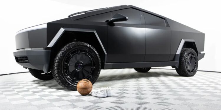 Dubbed the Signature Tsunami Cybertruck by the NBA star, the AWD Foundation Series configuration comes finished in a saint black wrap that protects its damage and bullet-resistant stainless steel alloy body. The custom gloss black Forgiato wheel further differentiates this Cybertruck from all others on the road while maintaining its ruggedness with off-road tires. In addition to the EV truck, the buyer of this Tesla Cybertuck will also receive a pair of sneakers and a basketball autographed by Kelly Oubre Jr.